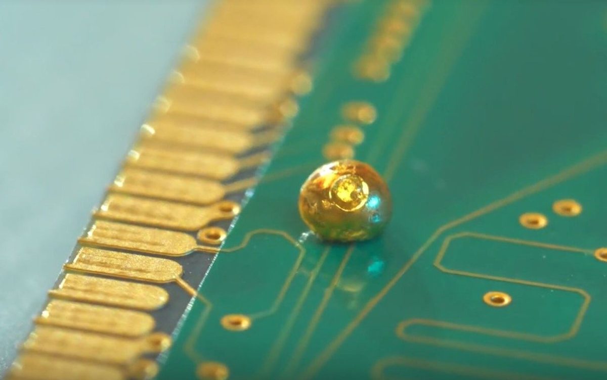 Z 20 płyt głównych starych komputerów udało im się uzyskać samorodek złota o próbie 22 karatów i wadze 450 miligramów, co pokazuje potencjał ekonomiczny tej procedury.