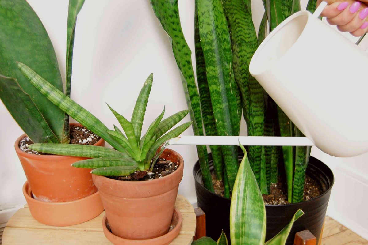 Pomimo upałów, język teściowej nie wymaga częstego podlewania. Zaleca się podlewanie co 10–15 dni, zawsze sprawdzając, czy gleba jest całkowicie sucha przed ponownym podlewaniem. Nadmiar wody jest jej głównym wrogiem.