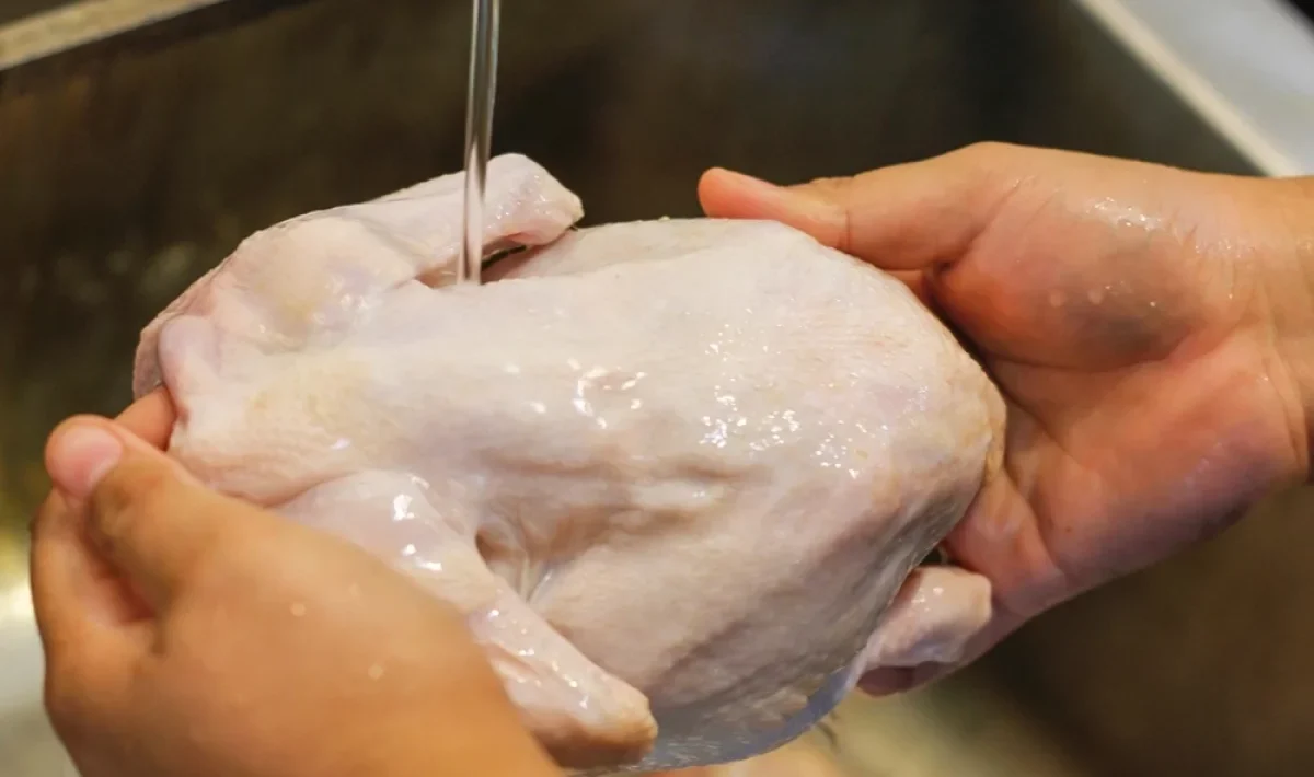 Co się dzieje z kurczakiem? Zacznijmy od podstaw: z kurczakiem nic się nie dzieje. Ryzyko związane z „myciem kurczaka” nie dotyczy samego kurczaka. Ma ono związek z zanieczyszczeniem krzyżowym: bakterie z surowego kurczaka (które zostałyby wyeliminowane podczas przygotowywania) przenoszą się na ręce, zlew, blaty i różne przybory kuchenne.